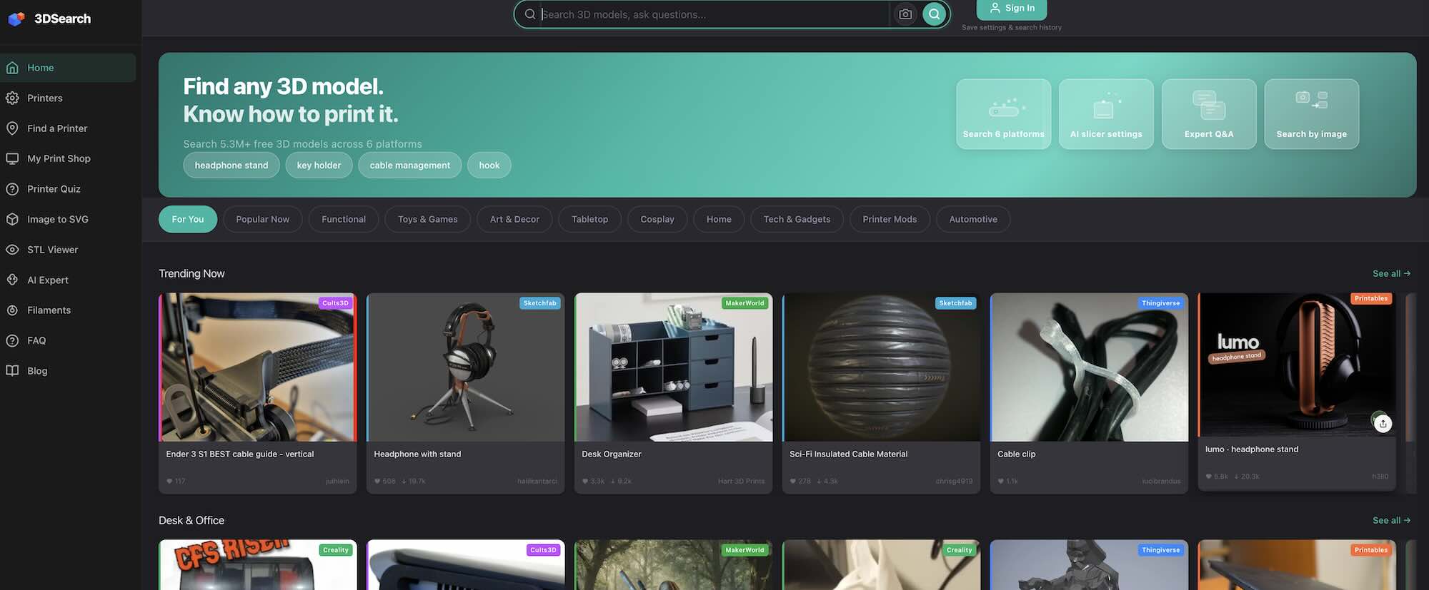 3DSearch si propone come alternativa con un design moderno, pulito e organizzato, dove ogni elemento dell’interfaccia è pensato per ridurre attrito e rendere la ricerca fluida. Secondo la presentazione su Fabbaloo, le piattaforme attualmente indicizzate includono: