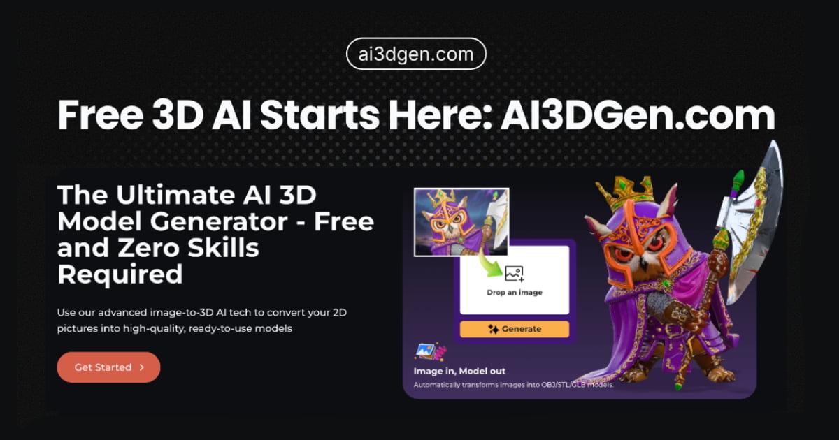 AI3DGen è un servizio browser‑based che permette di caricare immagini 2D (JPG, PNG, WebP) e ottenere in pochi minuti un modello 3D esportabile in formati STL, OBJ e GLB, utilizzabile sia nei workflow di stampa 3D che in applicazioni 3D/AR. Il tool è pensato per utenti senza esperienza CAD e propone un flusso semplificato basato su upload, generazione automatica tramite intelligenza artificiale ed export del file.
