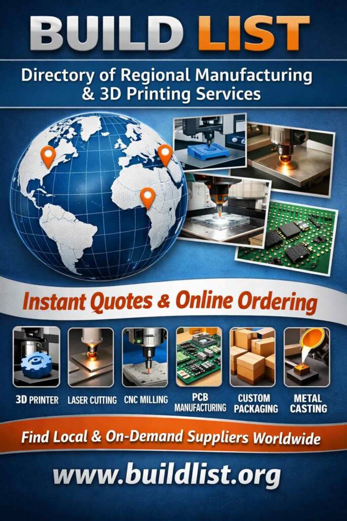 Build List è un sito che si presenta come directory di fornitori “on-demand”: l’idea è aiutare maker, designer e piccoli team a trovare servizi esterni (non solo stampa 3D) che permettano preventivo immediato e ordine online, caricando file di progetto e ottenendo costi e tempi indicativi. È un approccio diverso rispetto ai marketplace “generalisti”: qui l’obiettivo è mettere in fila operatori e piattaforme che già hanno un flusso digitale pronto, così da ridurre il tempo perso tra form di contatto, email e richieste manuali di quotazione.