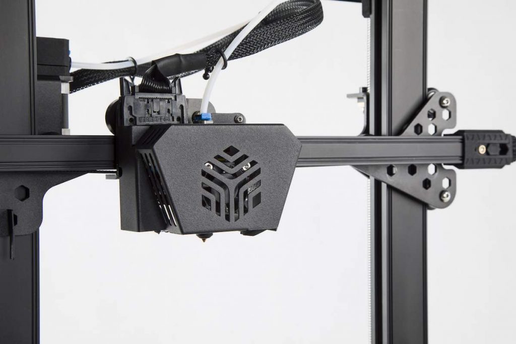 I gruppi di testine di stampa mal progettati sono la causa principale dell’ostruzione e della fuoriuscita degli ugelli. Il sistema crowdfunded di Creality mira a combatterlo con una struttura di testina di stampa modulare riprogettata che consente agli utenti di sostituire e sostituire facilmente i componenti. Il dissipatore di calore, il blocco termico, i tubi in teflon e l’hotend sono tutti decostruibili, incoraggiando la manutenzione e l’armeggiamento. Una serie di potenti ventole di raffreddamento consente un controllo superiore sull’estrusione e la retrazione del filamento. La testina di stampa ospita anche un sensore di esaurimento del filamento in situ per mettere in pausa le stampe quando necessario, particolarmente utile per quelle stampe di più giorni che bruciano bobine come il burro.