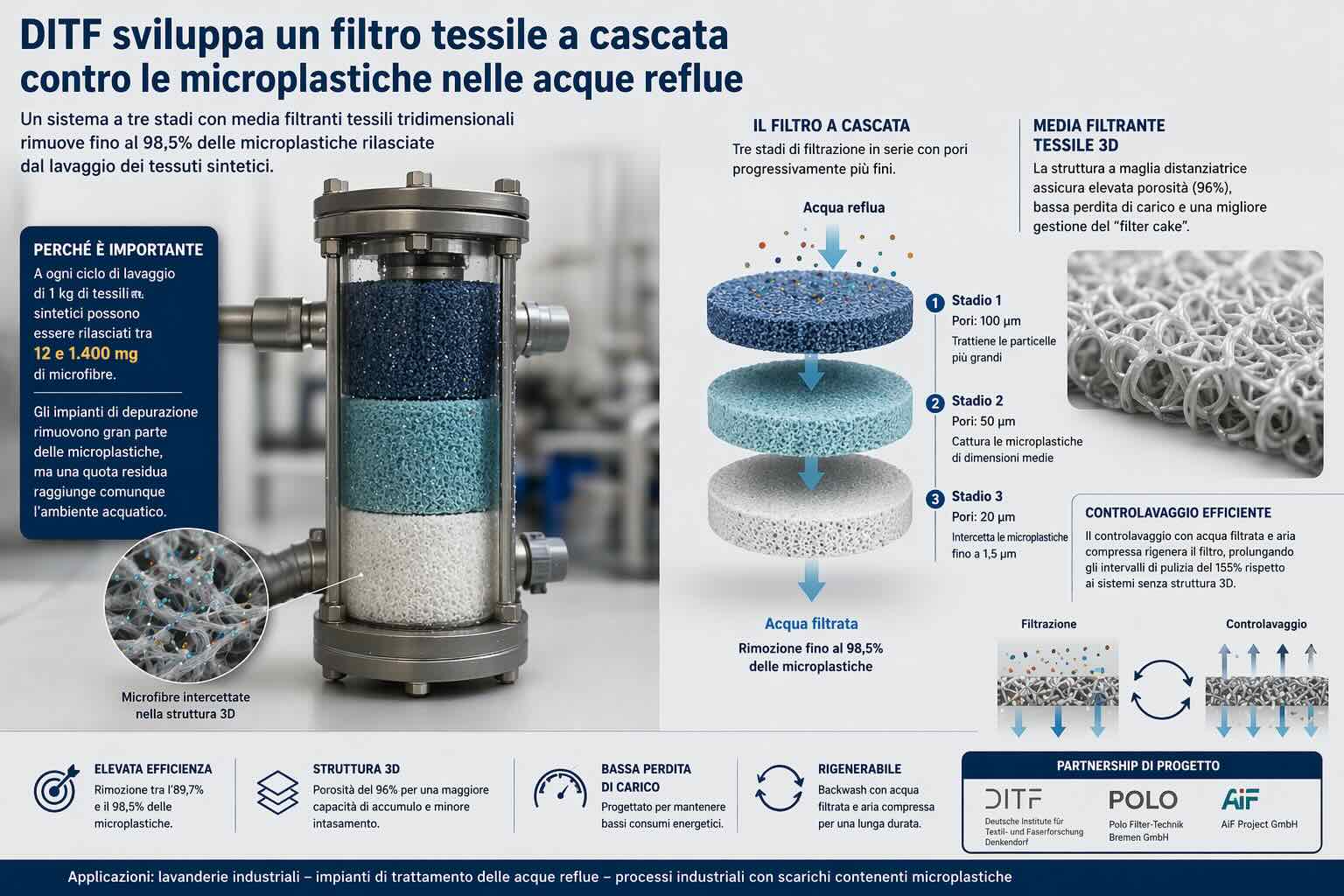 DITF sviluppa un filtro tessile a cascata contro le microplastiche nelle acque reflue