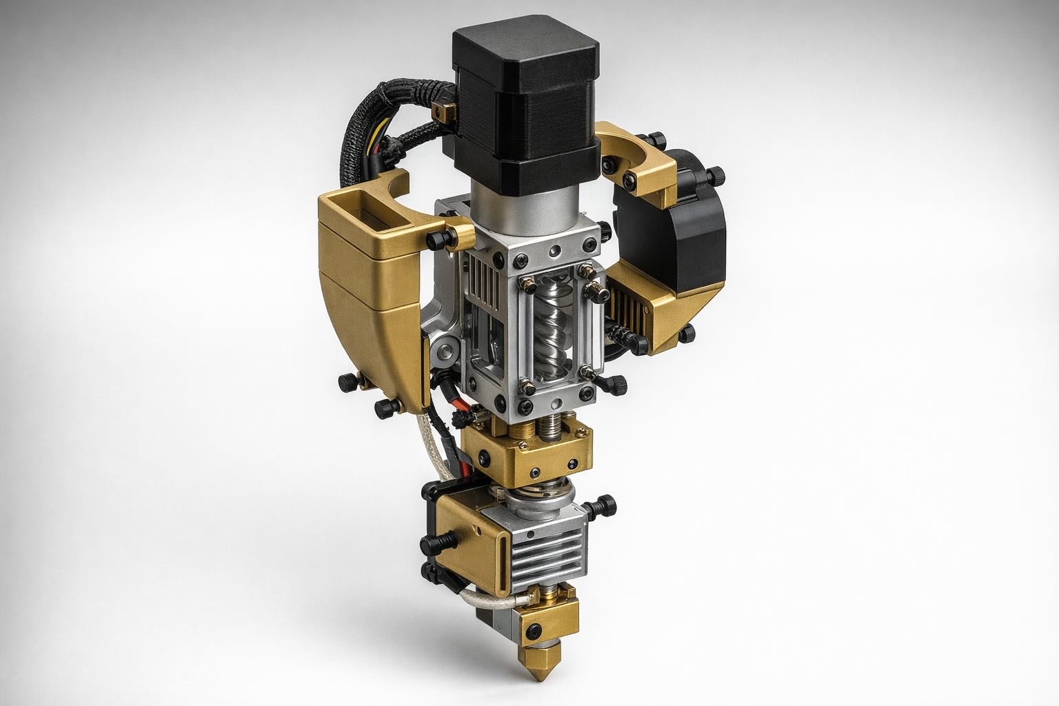 Nei sistemi FFF tradizionali il filamento funziona da “semilavorato” già omogeneo: viene trascinato e fuso in un hotend con volume fuso ridotto. Con feedstock caricati (fibre o particelle) il filamento può diventare fragile, difficile da produrre e poco tollerante alle variazioni. Una vite invece svolge tre ruoli insieme: dosare, fondere e miscelare il materiale, generando una spinta “a spostamento positivo” più adatta a sostenere pressione e portata anche quando la viscosità sale. Questo è il punto chiave quando si vogliono usare pellet “industriali” (o feedstock da processi tipo MIM/CIM) senza passare dalla trasformazione in filamento.