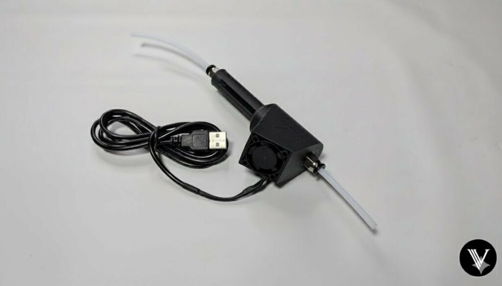 Come osserva Fabbaloo, molti essiccatori per filamento hanno porte passanti per alimentare direttamente la stampante mantenendo bassa l’umidità; il valore aggiunto del raffreddamento attivo,