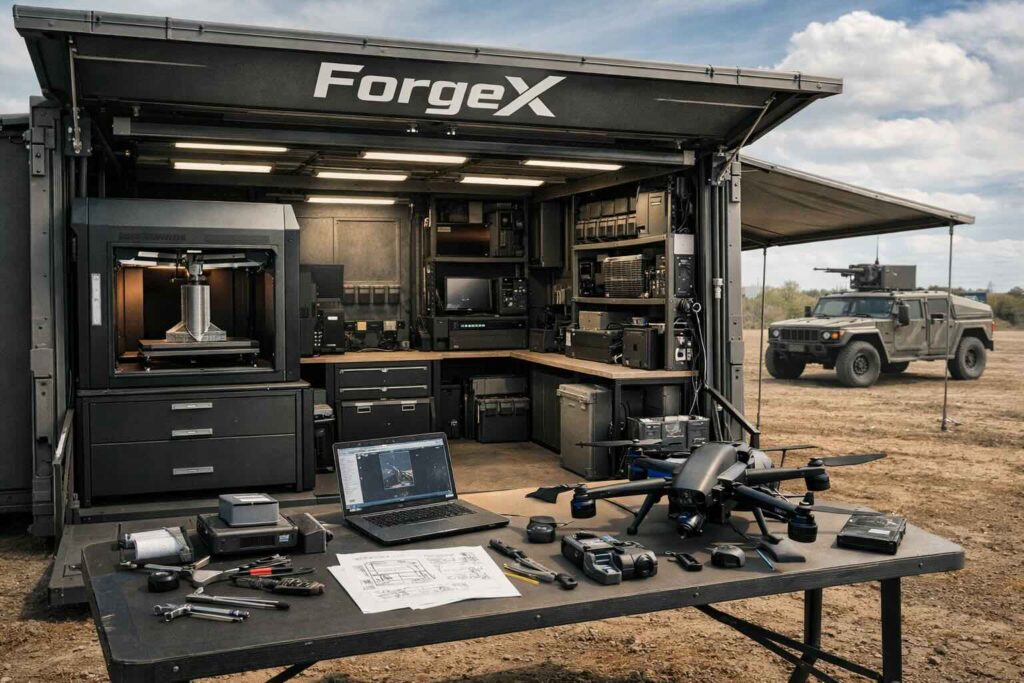 ForgeX è un sistema pensato per portare progettazione, stampa 3D e assemblaggio vicino al punto d’impiego, in scenari dove un laboratorio stabile non è disponibile o non è pratico: basi avanzate, cantieri remoti, aree di intervento, attività di manutenzione in ambienti isolati. L’obiettivo operativo è ridurre i tempi legati alla supply chain, producendo in loco utensili, ricambi e sottosistemi quando servono.