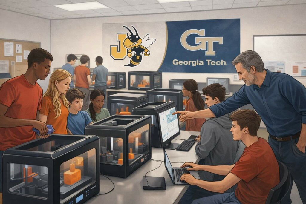 Uno dei punti centrali del progetto è la formazione dei docenti delle scuole superiori. Il Georgia Tech organizza workshop e sessioni pratiche per insegnanti di discipline STEM, con l’obiettivo di fornire competenze non solo sull’uso delle stampanti, ma su come integrare in modo organico la progettazione 3D e la stampa additiva nelle lezioni.