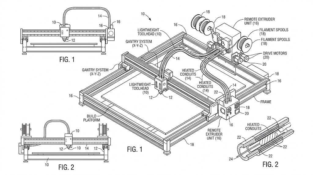 Il problema che il brevetto intende risolvere: la massa del toolhead nei sistemi FFF di grande scala
