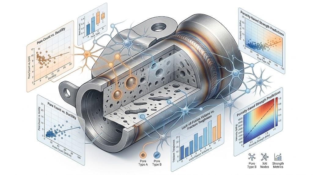Un team congiunto del Korea Institute of Materials Science (KIMS) e del Max-Planck-Institut ha sviluppato un approccio di intelligenza artificiale spiegabile che collega la forma e la distribuzione dei pori nelle parti prodotte con Laser Powder Bed Fusion alle loro proprietà meccaniche, in particolare alla resistenza. L’obiettivo non è solo prevedere se una combinazione di parametri genererà porosità critica, ma comprendere quali caratteristiche dei pori – dimensione, forma, orientazione, posizione – incidono maggiormente sull’innesco e sulla propagazione dei difetti sotto carico, così da guidare il design dei parametri di processo in modo più mirato.