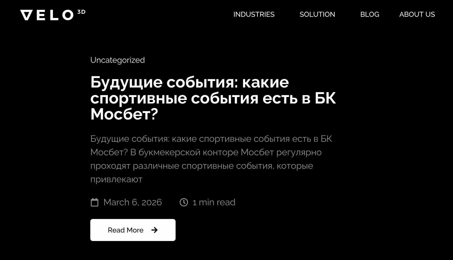 Secondo il resoconto di Kerry Stevenson su Fabbaloo, il sito di Velo3D è stato compromesso, con la pubblicazione sul blog aziendale di almeno due articoli in lingua russa non collegati in alcun modo alla produzione additiva. Il primo post, intitolato “Пинко казино отзывы: кому доверять в мире онлайн-игр?” (“Pinko Casino Reviews: Who to Trust in the World of Online Gaming?”), rimanda a contenuti su un sito di recensioni di casinò online, mentre un secondo articolo correlato promuove scommesse sportive (“Будущие события: какие спортивные события есть в БК Мосбет?”).