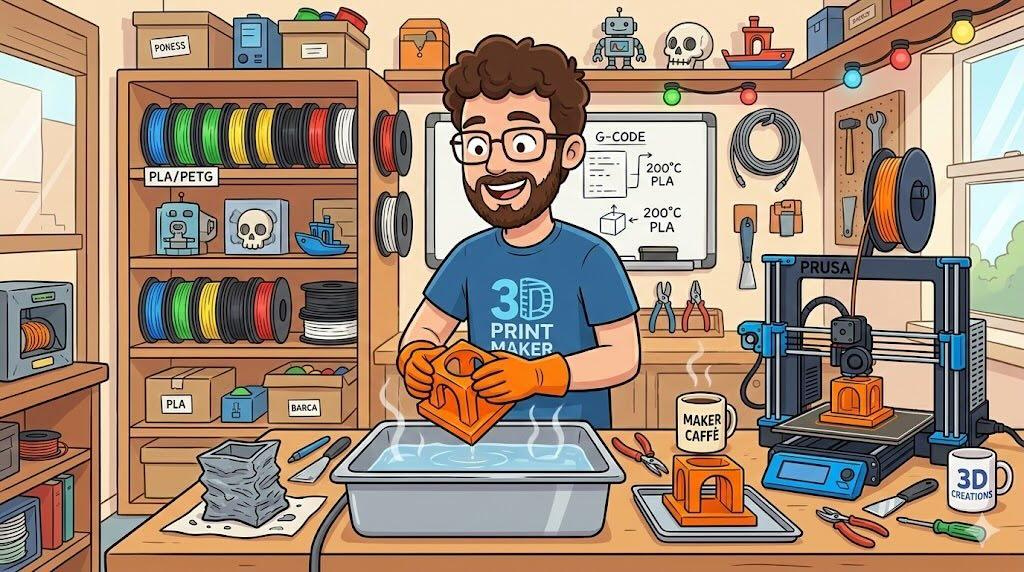 Rispetto alla ricottura in forno, tecnica già nota per migliorare le proprietà meccaniche del PLA ma che comporta spesso variazioni di dimensione e deformazioni di forma globale, l’acqua calda consente una modellazione localizzata e più intuitiva, adatta a piccoli aggiustamenti o a forme personalizzate su singoli pezzi. L’approccio nel video di Brock si colloca quindi tra il semplice “fix” di una deformazione e un vero e proprio processo di formatura post‑stampa.
