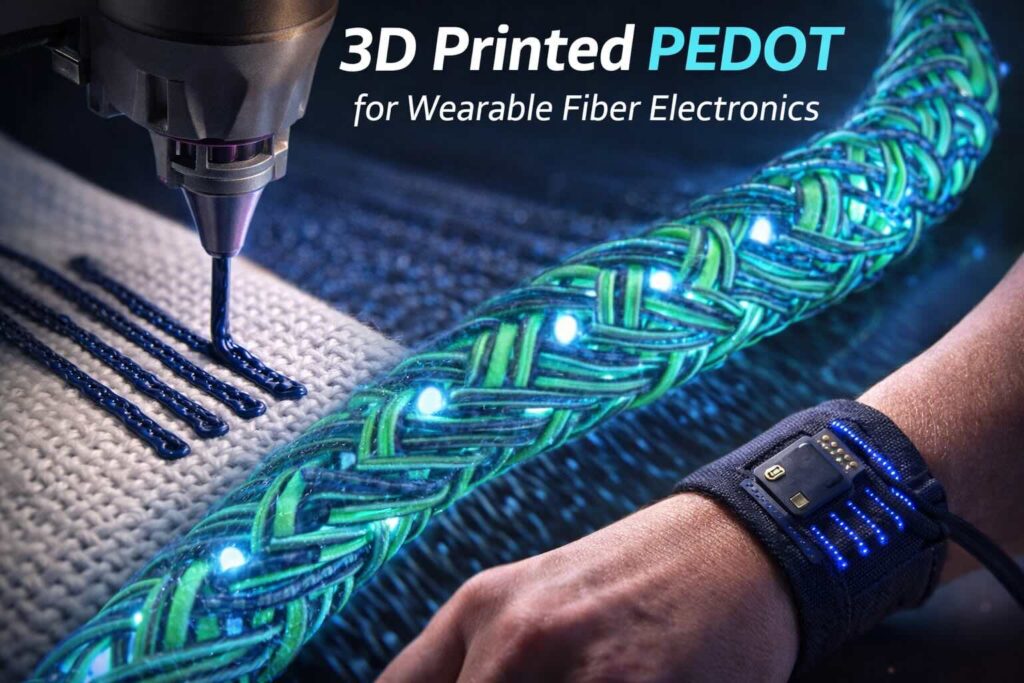Lo sviluppo di dispositivi indossabili sta spingendo la ricerca verso materiali sempre più flessibili, leggeri e integrabili nei tessuti. In questo contesto, l’utilizzo del polimero conduttivo PEDOT stampato in 3D rappresenta una strada promettente per realizzare fibre elettroniche capaci di trasportare segnali e monitorare parametri fisiologici.