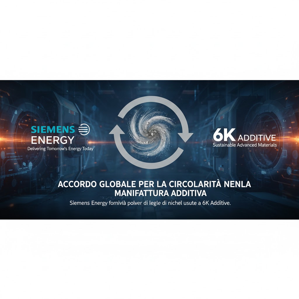 Siemens Energy e 6K Additive hanno siglato un accordo globale di fornitura a lungo termine per il recupero e la valorizzazione di polveri e scarti a base di superleghe di nichel provenienti dalle attività di produzione additiva di Siemens Energy. Il materiale di scarto verrà utilizzato da 6K Additive come feedstock per la produzione di nuove polveri metalliche di alta qualità mediante la piattaforma al plasma a microonde UniMelt, con l’obiettivo di ridurre sprechi, consumi energetici ed emissioni lungo l’intera catena del valore della stampa 3D metallica.