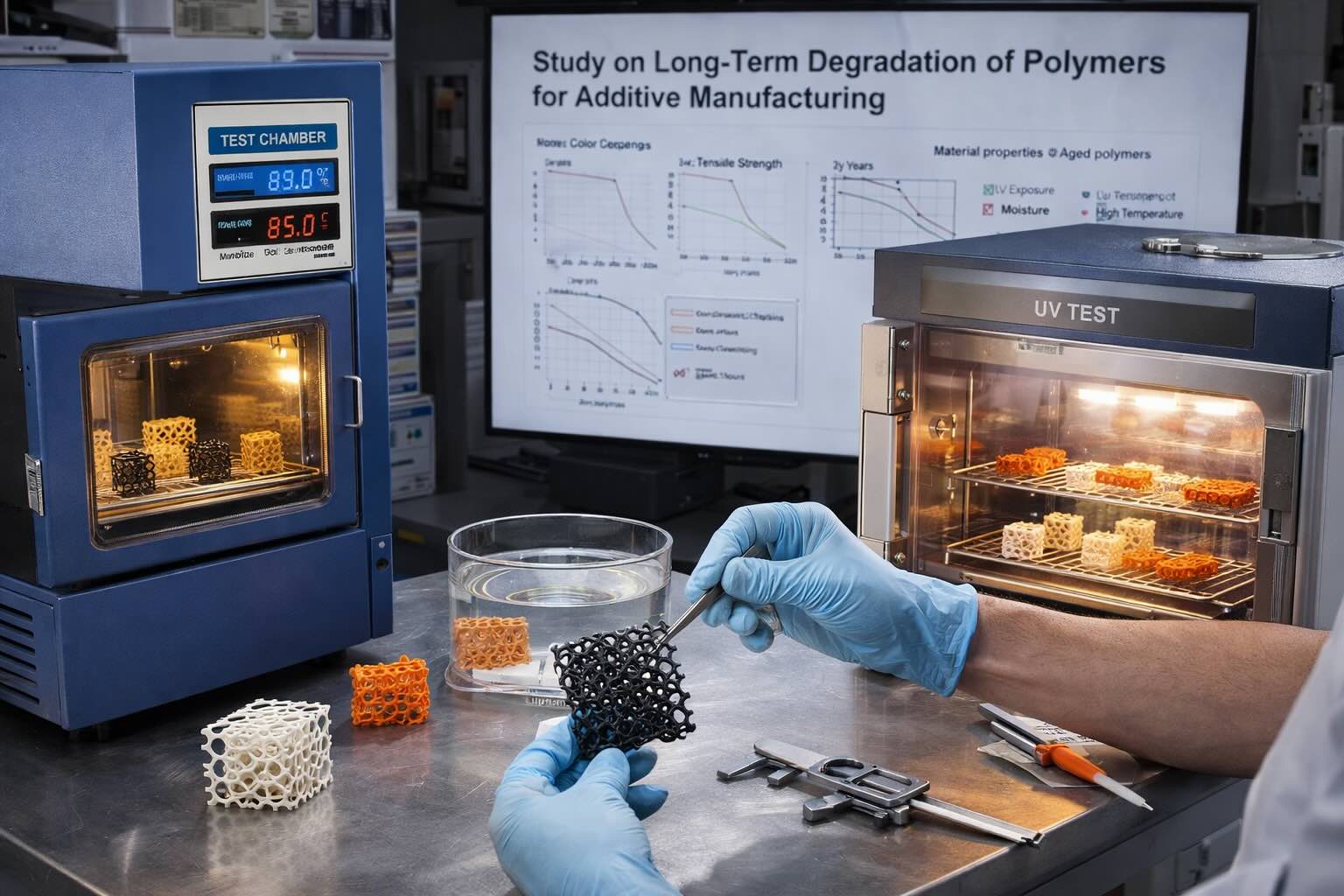 I ricercatori considerano un ventaglio di materiali che include termoplastici standard e polimeri ad alte prestazioni, tra cui PLA, ABS, PA12 e formulazioni caricati per applicazioni tecniche, prodotti con tecnologie come FFF/FDM, SLS e processi affini. La combinazione tra tipologia di polimero, architettura interna del pezzo e parametri di processo viene analizzata per capire come queste variabili interagiscano con i meccanismi di invecchiamento.