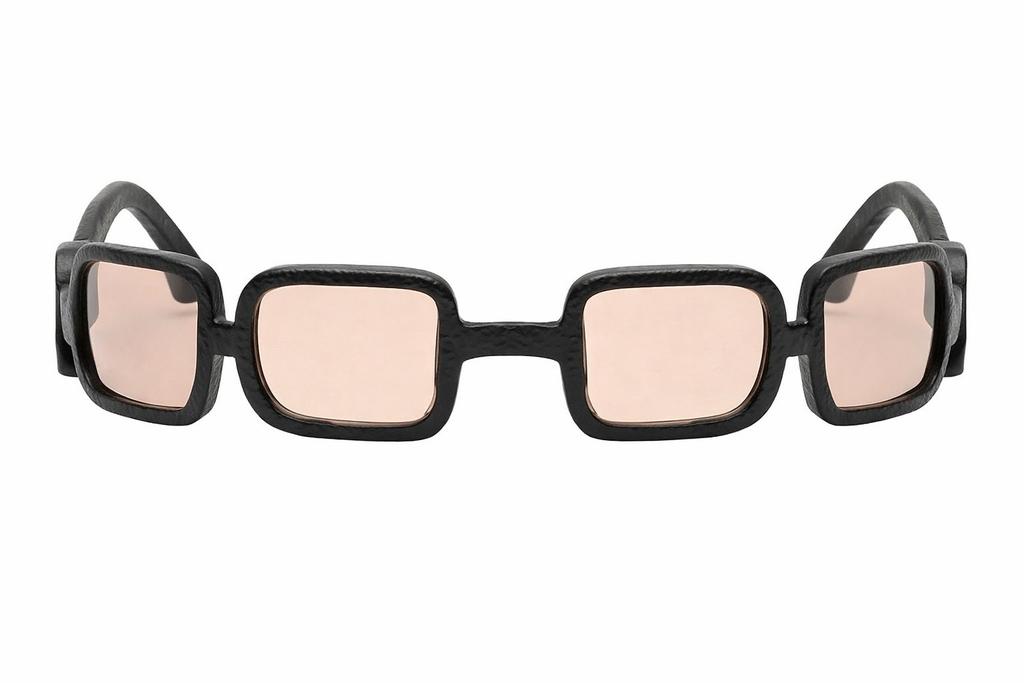 Secondo le informazioni ufficiali, UROKO è proposto con lenti in due varianti colore, Dark Gray e Brown, integrate in frame scuri che enfatizzano il gioco di ombre lungo la sequenza di lenti concave. Le viti a vista in metallo e le cerniere tradizionali fanno da contrasto tecnico alla componente più scultorea della montatura, sottolineando il dialogo tra oggetto d’uso e oggetto artistico.