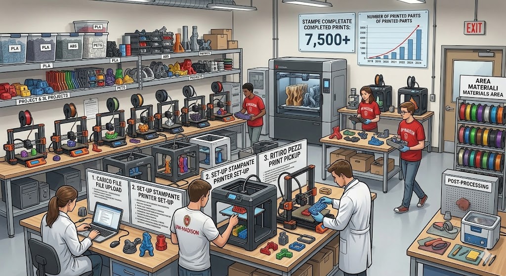 UW–Madison aggiorna il Makerspace: più stampanti 3D, maggiore automazione e gestione interna dei job